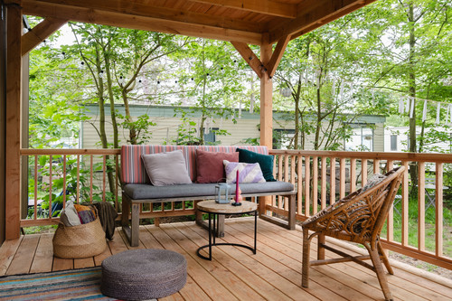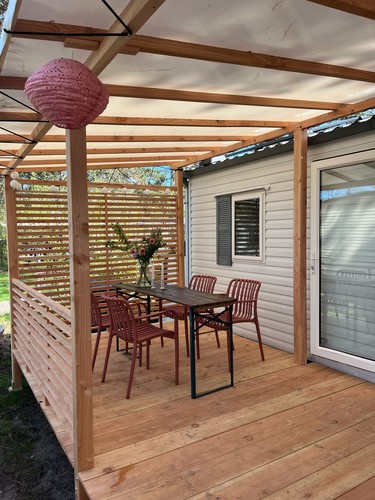 Stacaravan met overdekte veranda aan rand van het bos (1228)