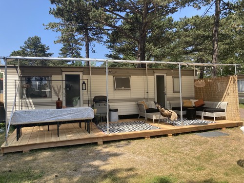 Knusse caravan Bakkum op heerlijk rustige en zonnige plek in Dennenbos, dicht bij strandopgang. (#756)
