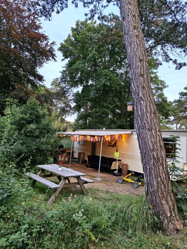 Sfeervolle caravan in Dennebos (zon & schaduw) (#1029)