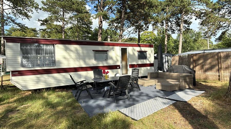 Sfeervolle caravan te huur in het Dennenbos van Camping Bakkum